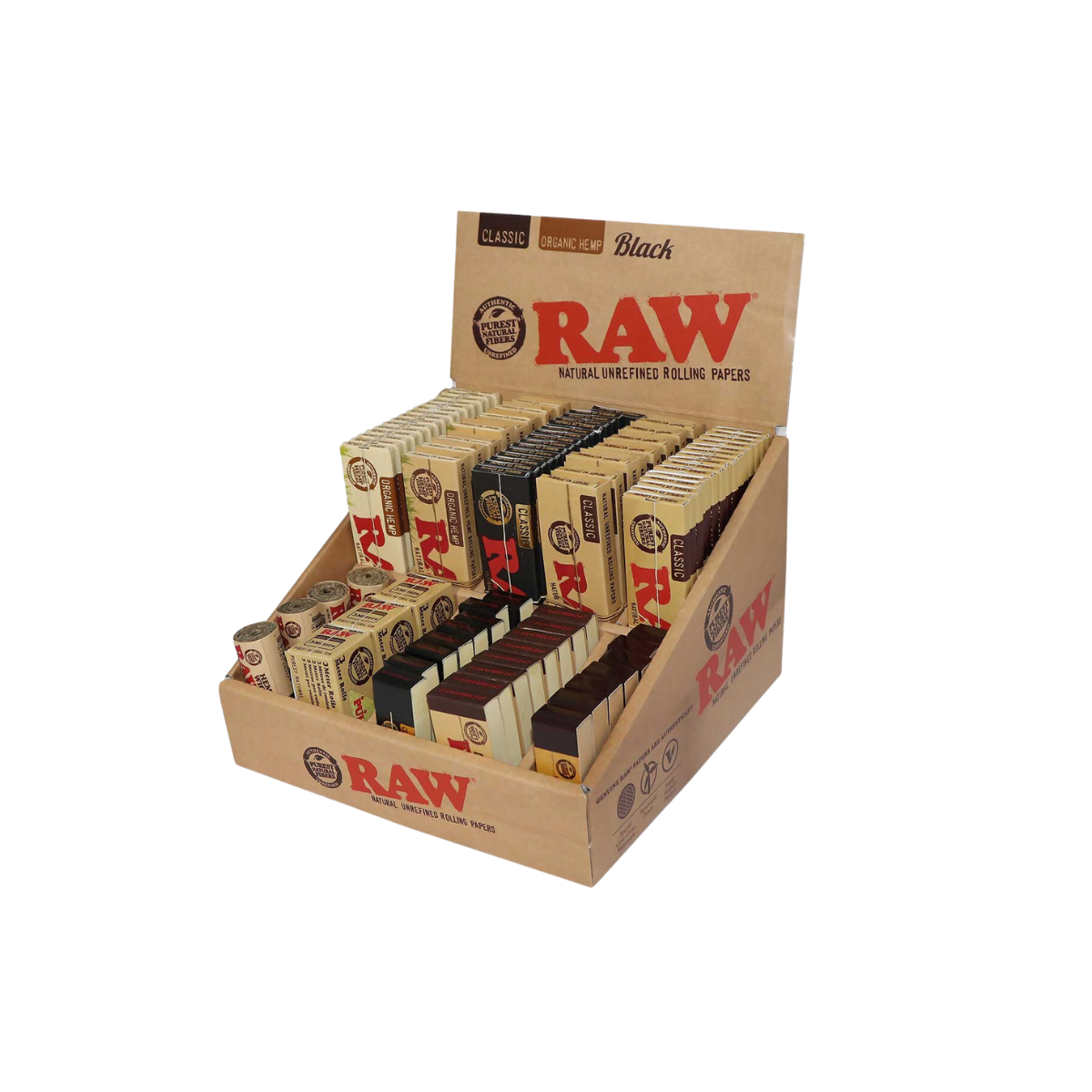 Raw Counter Top Display with Assorted Rolling Papers, Tips and Accessories